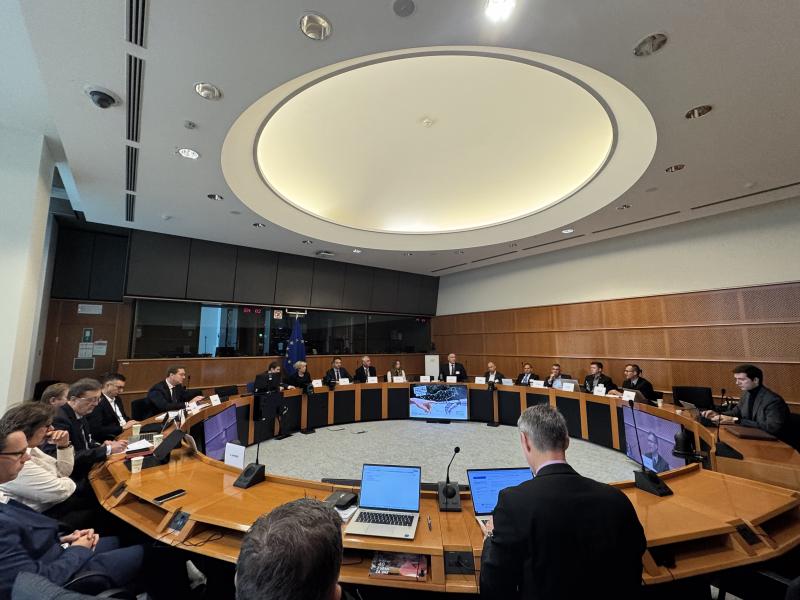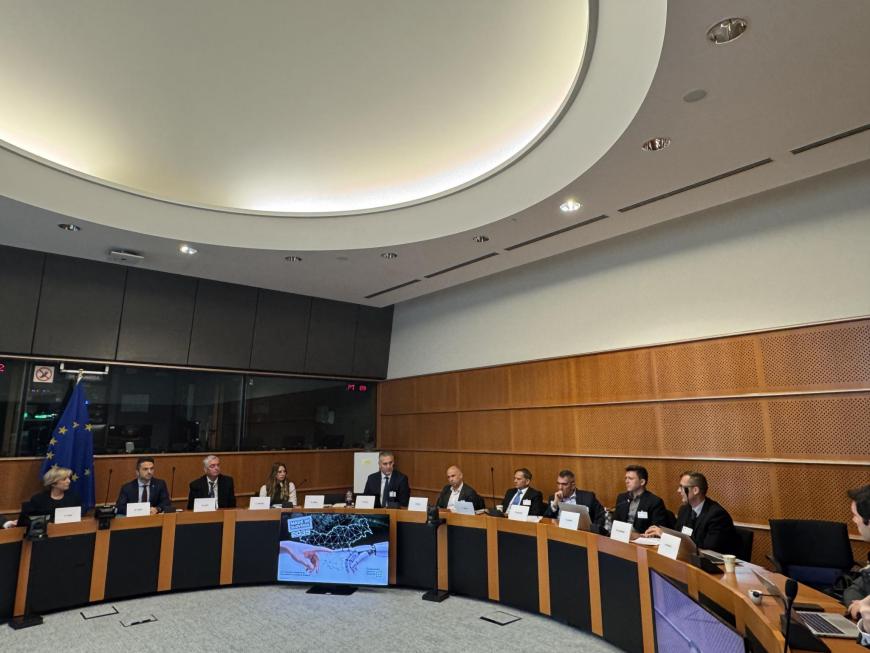 Evropski poslanec dr. Milan Zver se je skupaj s še nekaterimi evropskimi poslanci iz Slovenije v Pučnikovi sobi v Bruslju srečal s slovenskimi gospodarstveniki in predstavniki GZS, ki so poslankam in poslancem predstavili svoj nov gospodarski program "Made in Slovenia 2035" in ključne prioritete slovenskega gospodarstva.