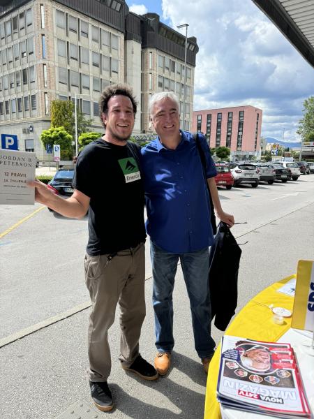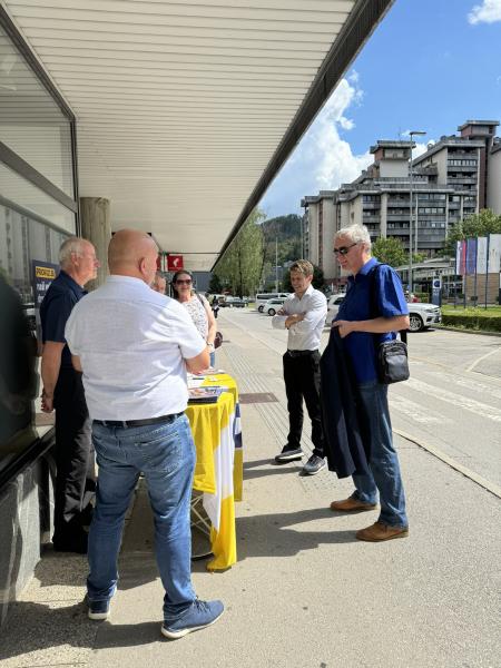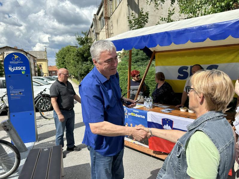 "Lepo je bilo danes srečati domačine na stojnici Slovenske demokratske stranke v Mozirju. Hvala vsem za pogovor, dobro voljo in srčno delo za boljšo Slovenijo!" je zapisal na omrežjih po srečanju v Mozirju.