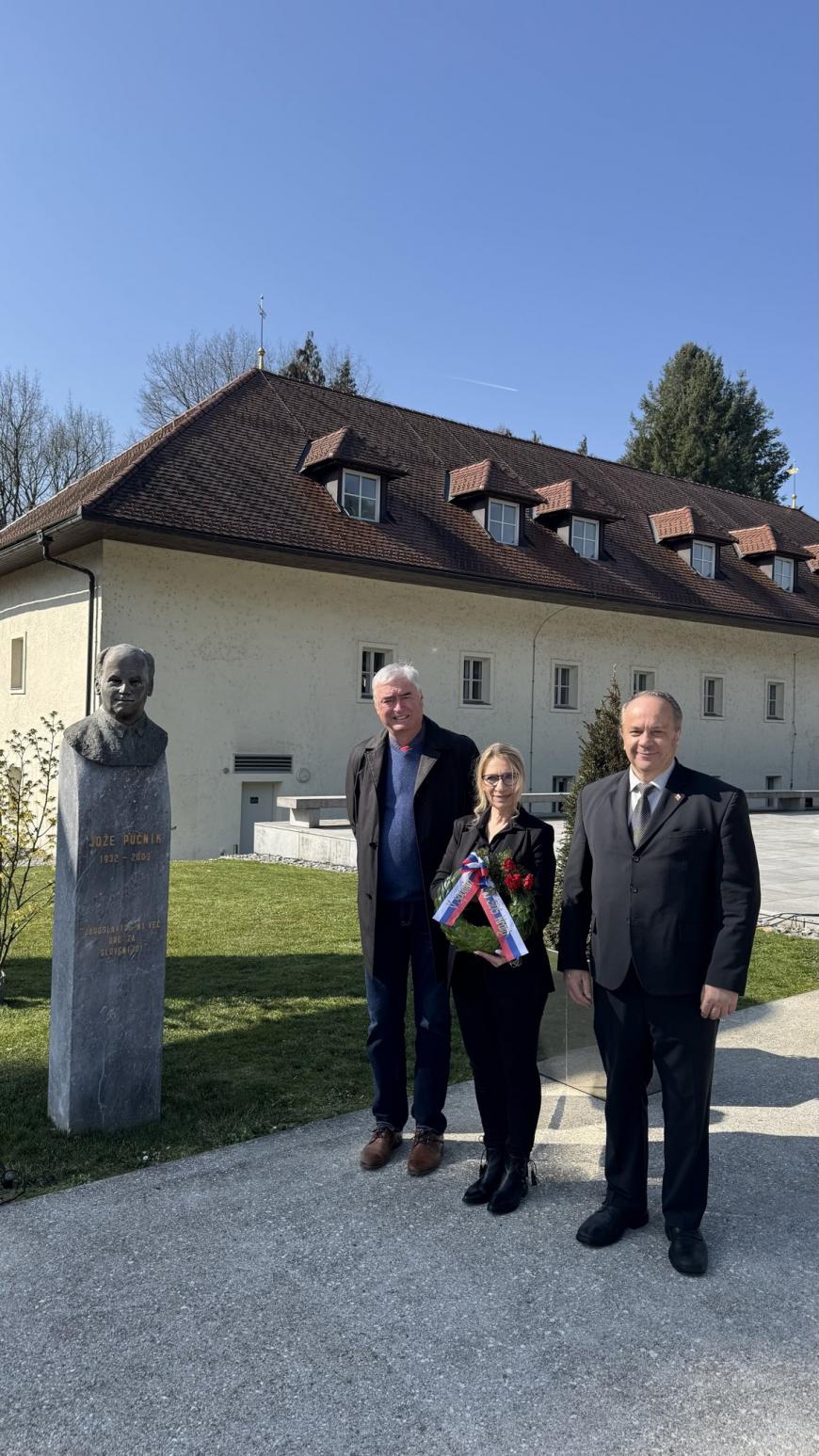 Delegacija je venec pred doprsni kip položila, ker bo 9. marca obletnica rojstva dr. Jožeta Pučnika (1932–2003), ključne osebnosti slovenske osamosvojitve, politika, sociologa in vodje koalicije DEMOS. Zaradi kritičnega razmišljanja je bil v povojnem času zaprt in je emigriral v Nemčijo, leta 1989 pa se je vrnil in vodil demokratizacijo ter osamosvojitev Slovenije