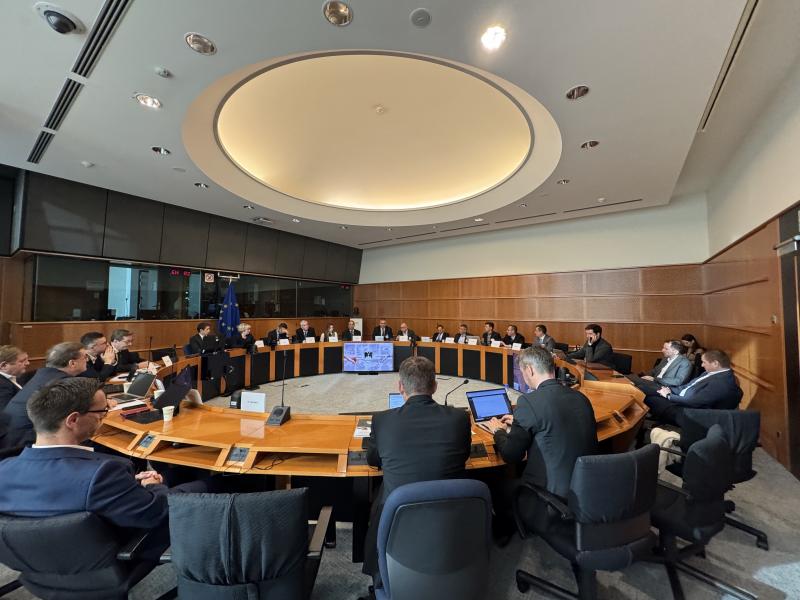 Evropski poslanec dr. Milan Zver se je skupaj s še nekaterimi evropskimi poslanci iz Slovenije v Pučnikovi sobi v Bruslju srečal s slovenskimi gospodarstveniki in predstavniki GZS, ki so poslankam in poslancem predstavili svoj nov gospodarski program "Made in Slovenia 2035" in ključne prioritete slovenskega gospodarstva.