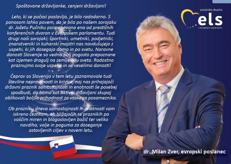 Voščim vam miren in blagoslovljen božič ter veliko navdiha, volje in poguma za doseganje zastavljenih ciljev v prihodnjem letu. Prav tako pa vam že sedaj iskreno čestitam ob prazniku dneva samostojnosti in enotnosti!